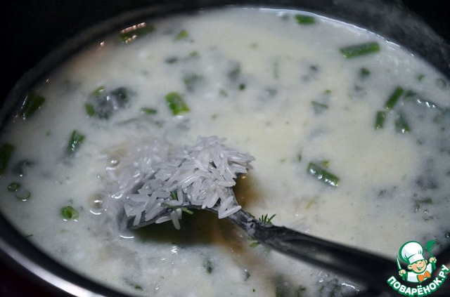 Добавляем рис. Перемешиваем и варим до готовности риса. Вот собственно, летняя версия этого супа готова. Его охлаждают и в жаркую погоду пьют.