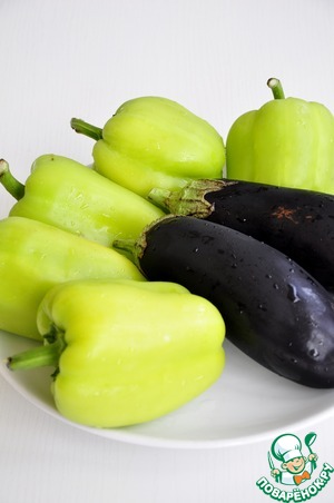 Разогреть духовку до 180*. Баклажаны запекать до готовности, перцы до полуготовности.
