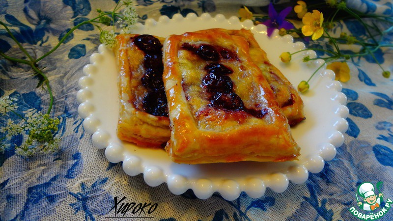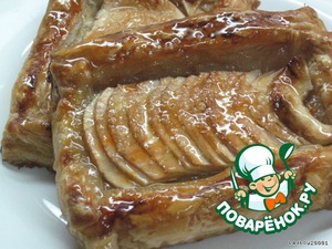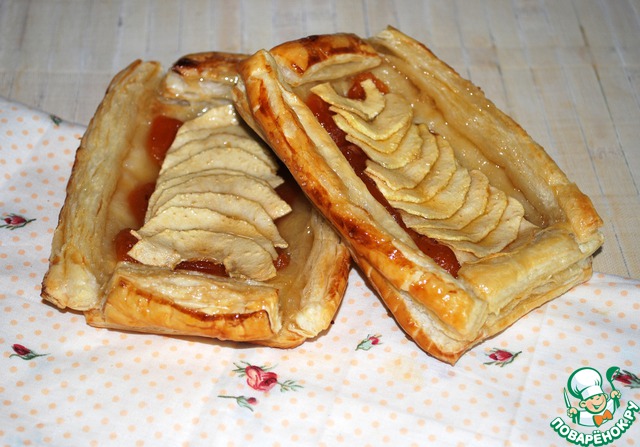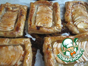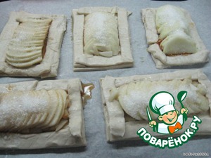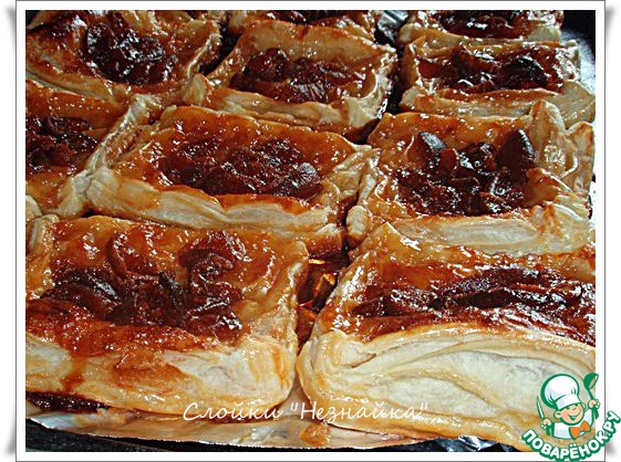 Cлегка раскрыв, класть в середину слойки, присыпать сахаром с корицей и отправить в разогретую до 190 град. духовку на 25-30 минут.