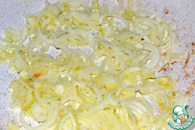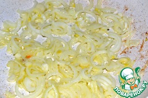 Растопим сливочное масло и обжарим лук до мягкости