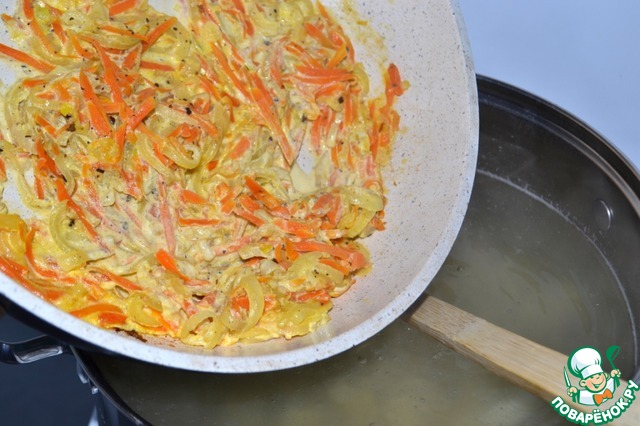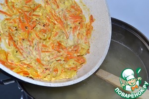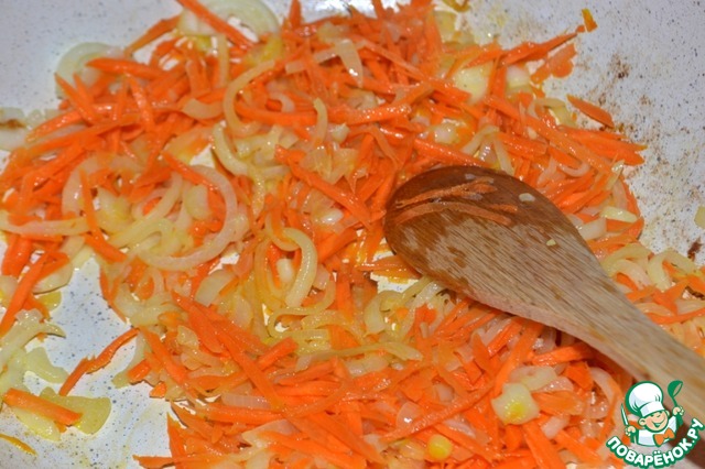 Добавим к луку морковь и готовим до мягкости.