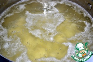 Вскипятим воду, посолим и опустим картофель. Варим минут 5.