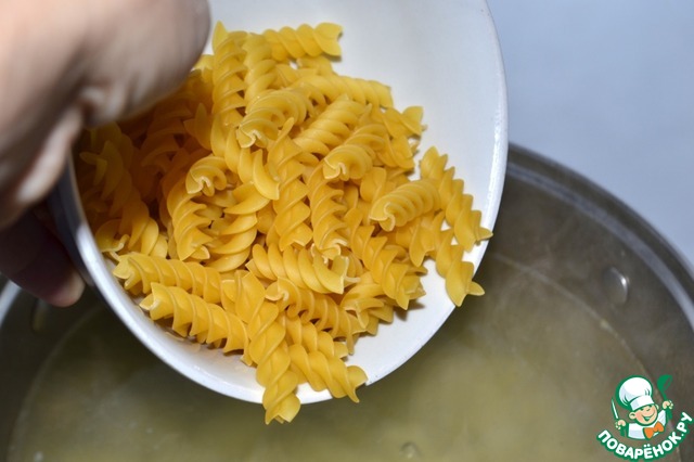 Добавляем макаронные изделия. Доводим до кипения, варим минут 5