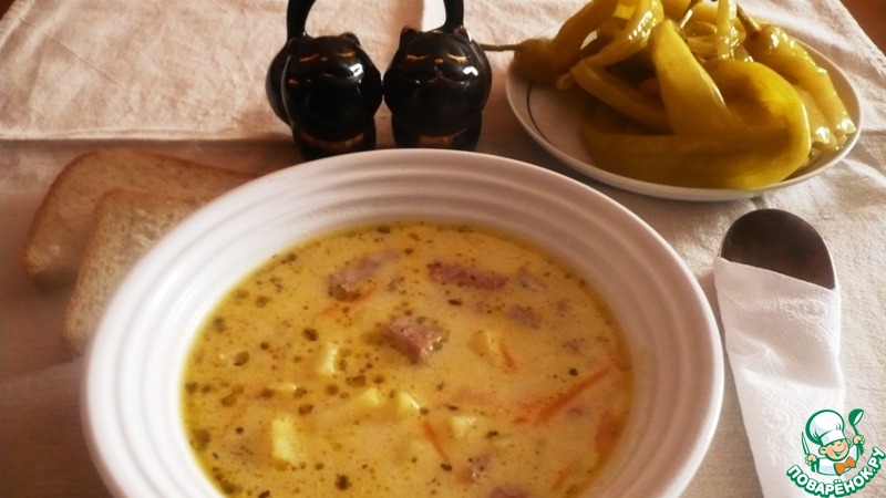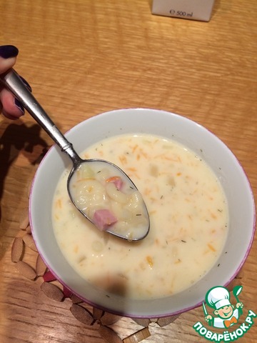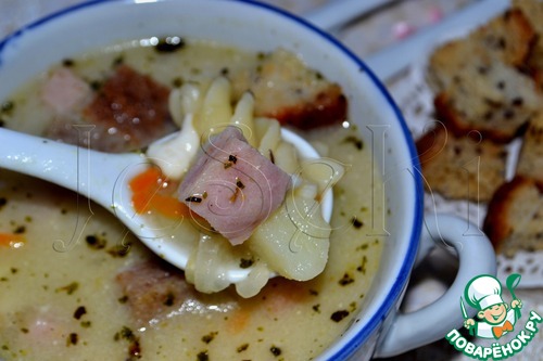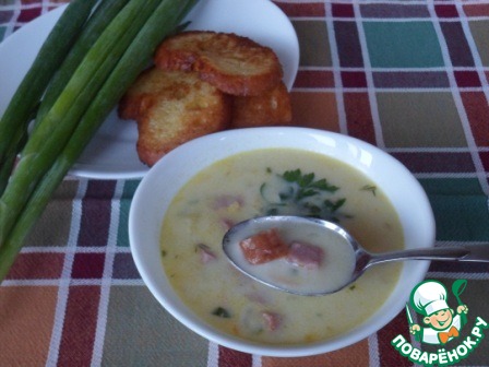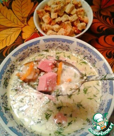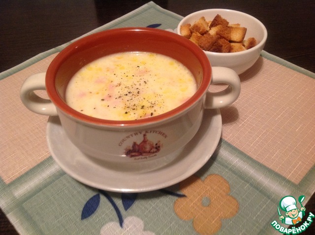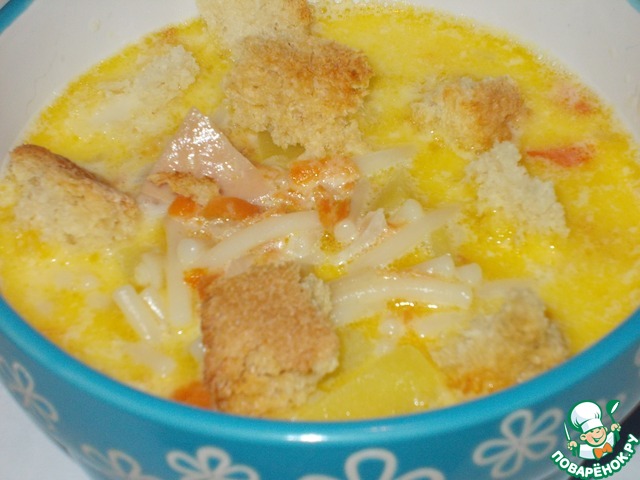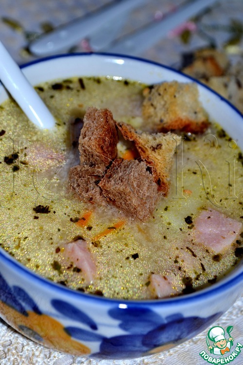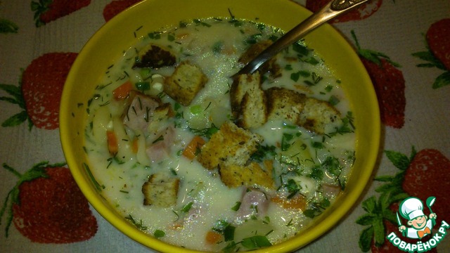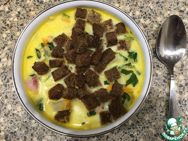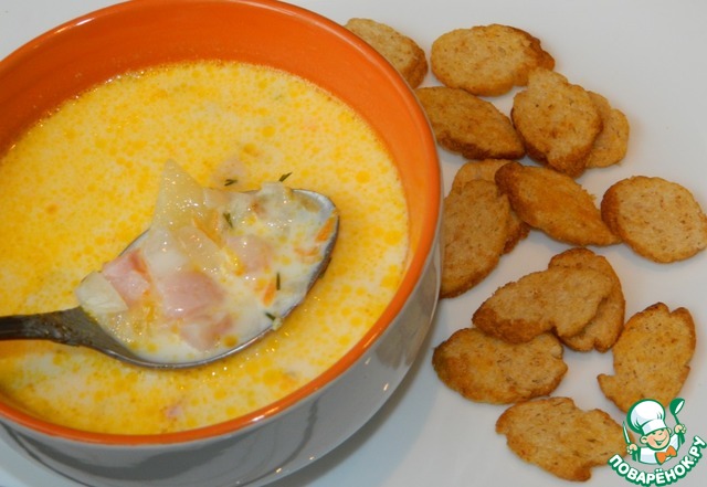 Рецепт «Сливочно-сырный суп с ветчиной и сухариками»:
