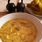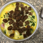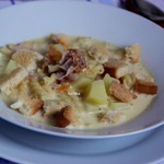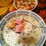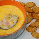 Сливочно-сырный суп с ветчиной и сухариками