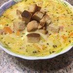 [+5]Суп получился отличный, сливочный, нежный, "уютный" и согревающий. Готовила на курином бульоне.
