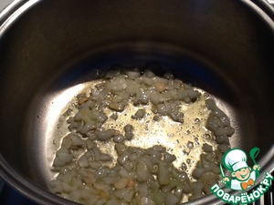 • В глубокой кастрюле разогреть оливковое и растительное масло, добавить чеснок и прожарить его минуть 5 до прозрачного цвета, чтобы масло впитало чесночный вкус и аромат. После добавить к чесноку лук и прожарить все вместе еще минут 5. Готовить на среднем умеренном огне.