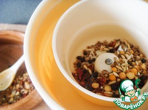 Для придания блюду характерного восточного аромата понадобятся специи. Для индийской кухни свойственны смеси специй, которые носят общее название "масала". Для смеси самбар-масала, кроме самих специй также понадобится сухой горох (индийский голубиный горох) и хороший рис. Я выбрала желтый горох и коричневый рис от "Мистраль". -