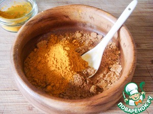 Полученный порошок соединить с куркумой и хорошо перемешать.