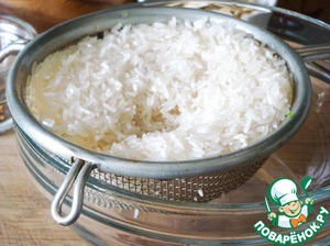 Теперь можно приступать к приготовлению плова: рис промыть и откинуть на дуршлаг.