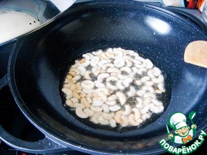 Добавить орехи кешью, обжаривать до легкого изменения цвета, после этого сразу добавить лук, обжаривать до золотистости.