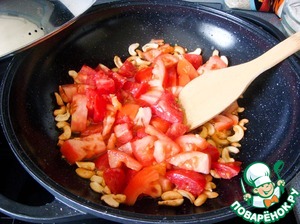 Следом добавить половину нарезанных томатов. Одну часть оставить на потом.