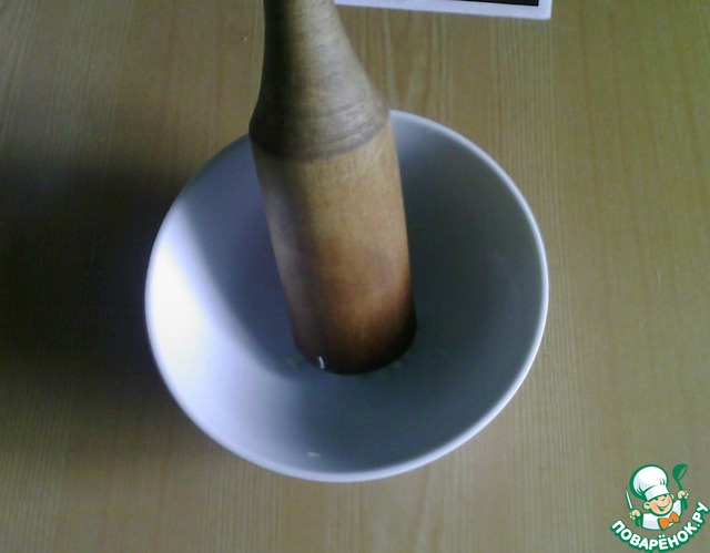 Чеснок измельчить (готовила на 2 порции и не стала смешивать на доске 2 зубчика, потому что класть их в разные суповые мисочки собиралась).