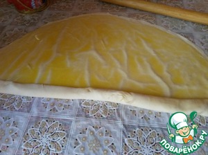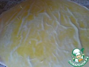 Смазываем пласт теста маслом.