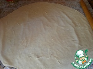 Раскатываем тесто в тоненький пласт.