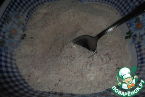 2. Просеиваем в чашку муку, добавляем какао, сахар, соль, разрыхлитель и ванилин.