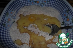 3. Перемешаем тщательно, до однородного цвета. Добавим размягченное масло и яйцо.