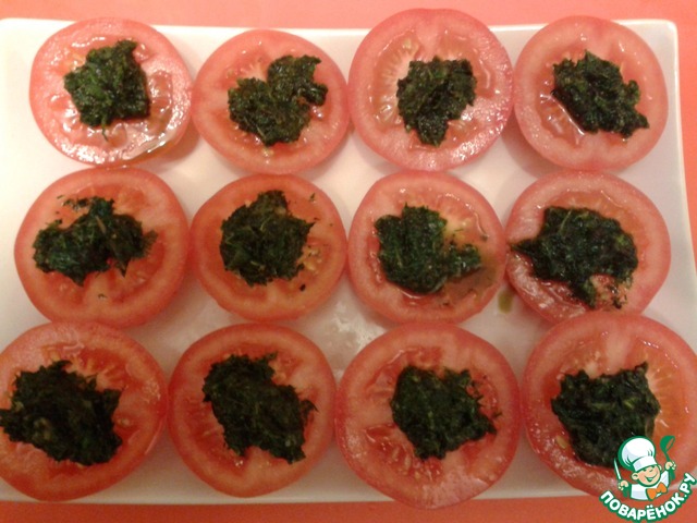 Выложить на тарелку помидоры и сверху положить на каждый немного пряной заправки. В принципе все готово. И для шашлыка больше ничего делать не надо.