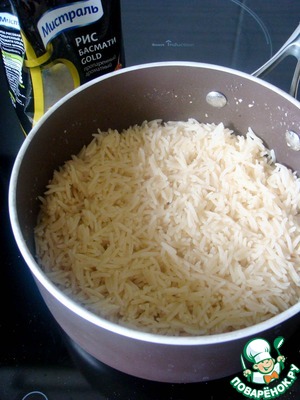 Для этого блюда я выбрала ароматный рис басмати gold от "Мистраль". Этот рис не нужно промывать, он не слипается, остается рассыпчатым и обладает прекрасным собственным ароматом.