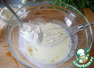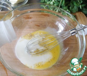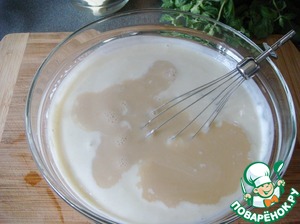 Постепенно добавляя йогурт, перемешивать с помощью венчика.
