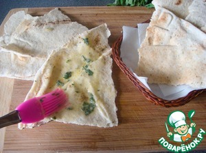Оставшимся растопленным маслом смазать лепешки из пресного теста для подачи.
