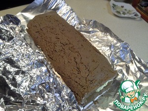 Полученный паштет хорошенько вымешиваем руками до однородности и выкладываем на фольгу, разравниваем ровным слоем, тольщиной около 1 см. Сверху тонким слоем намазываем остальное сливочное масло.