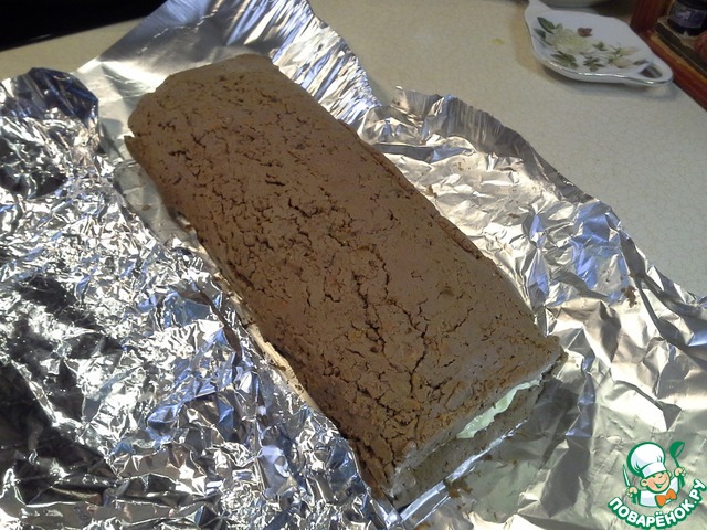 Паштет сворачиваем в плотный рулет, заворачиваем в фольгу и отправляем в холодильник на 3-4 часа.