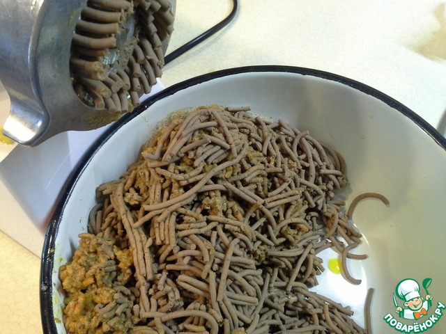 На самой мелкой решетке мясорубки прокручиваем один раз печень, лук с морковью и 50 грамм предварительно размягченного сливочного масла.