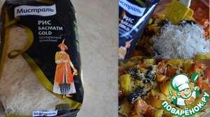 3. Длиннозерный пропаренный рис «Басмати Голд» ТМ «Мистраль» насыпаем к сухофруктам, добавляем щепотку куркумы, соль, перец, любимые специи и шафрановую воду.