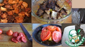 Очарованная телепередачами о путешествиях в Марокко, мне очень захотелось приготовить дома тажин. Тажин-это и специальная посуда, и само блюдо, которое готовится в нем. Тажин-посуда бывает и глиняной, и чугунной. Широкая сковорода, которая накрывается специальной вытянутой крышкой с маленькой дырочкой сверху. Тажин-блюдо в тажин-посуде готовят на углях и готовят очень долго, порой, целый день. Блюдо томится в собственном соку под действием не высокой температуры и становится вкусным, сочным, тающим во рту. У меня дома нет углей, ни тажина, но зато есть огромное желание угостить семью и Вас таким вкусным блюдом. Поэтому, я решила тажин приготовить своими руками из подручных продуктов. Посмотрите, что из этого получилось.