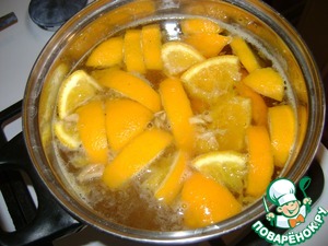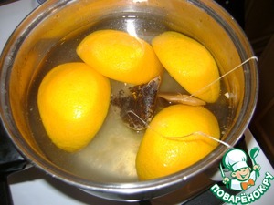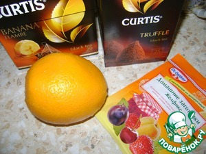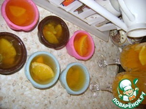Апельсиновые дольки и агар-агар залить водой, туда же я положила и чайные пакетики (можно заварить чай и затем чаем залить апельсин;положить заварку и процедить и т. д. Но мой способ удобнее).