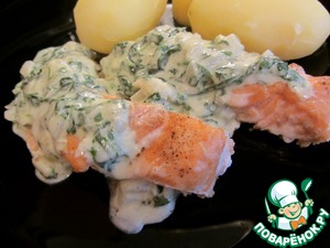 Итак, блюдо №1 - Запеченный лосось со сливочно-шпинатным соусом.