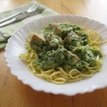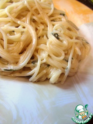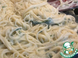 Блюдо №2 - Сливочные спагетти со шпинатным соусом.