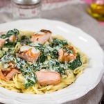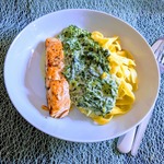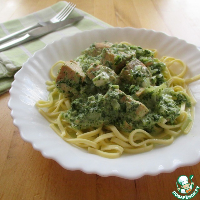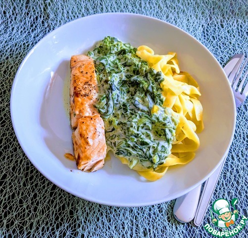 Блюдо №3 - Паста с лососем в сливочно-шпинатном соусе.