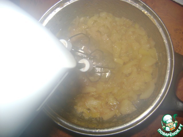 Взбиваем яблочное пюре 5-6 минут (оно должно увеличиться в объеме в 2-3 раза и изменить цвет (будет светлее)).