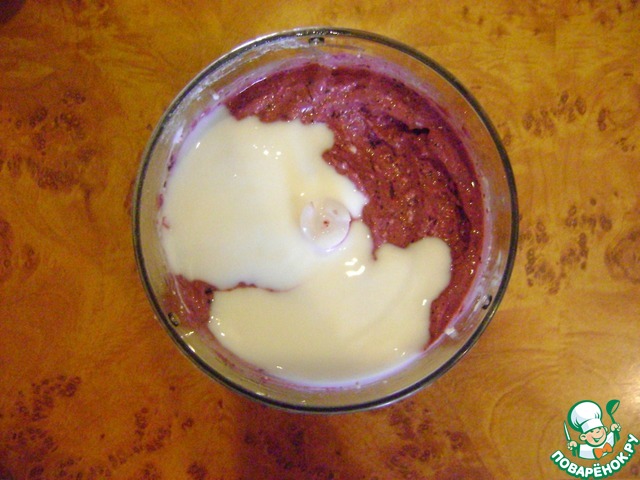Блендеруем творог+немного ягоды (2-3 ст. л.) -