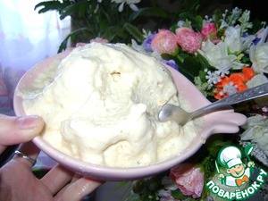 Вот мороженое, замороженное после приготовления (если вам нужно бежать, а мороженое вы уже сделали, можно переложить его в контейнер и заморозить, а затем подогреть в микроволновке несколько минут или же подержать при комнатной температуре около 15 минут).