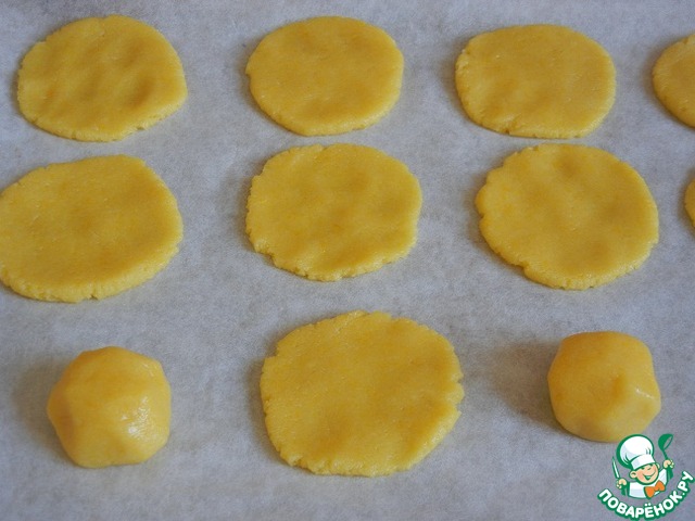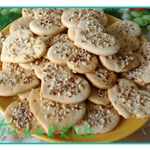 В оригинале печенье делается в форме полумесяца, у меня не нашлось нужной формы и я сделала в виде лепешечек. Готовое печенье выкладываем на противень застеленный пекарской бумагой. Смазываем печенье белком и посыпаем рубленными фисташками (не солеными), о чем я, кстати говоря, забыла совсем :) Выпекаем печенье в разогретой до 180 градусов духовке около 15 минут.