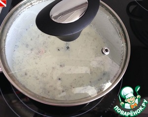 Затем смессь из сливок и желтков. Половину массы я пропустила через блендер, чтобы она стала однородной.