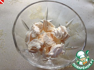 Приступаем к сборке десерта. На дно креманки кладем меренги (я их поломала).