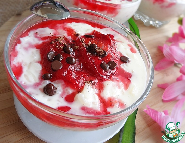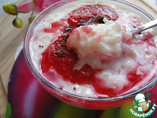 Рецепт «Быстрый рисовый пудинг с корицей и горячими сливами»: