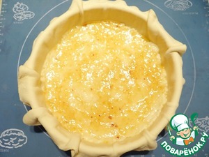 Края теста загибаю в виде "волны". Жалко, но моя волна при выпечке куда-то уплыла. Видимо, это зависит от самого теста, будет ли оно держать форму.