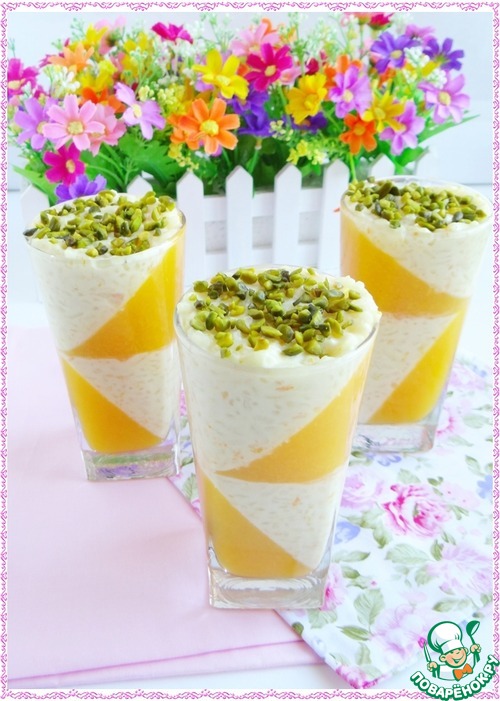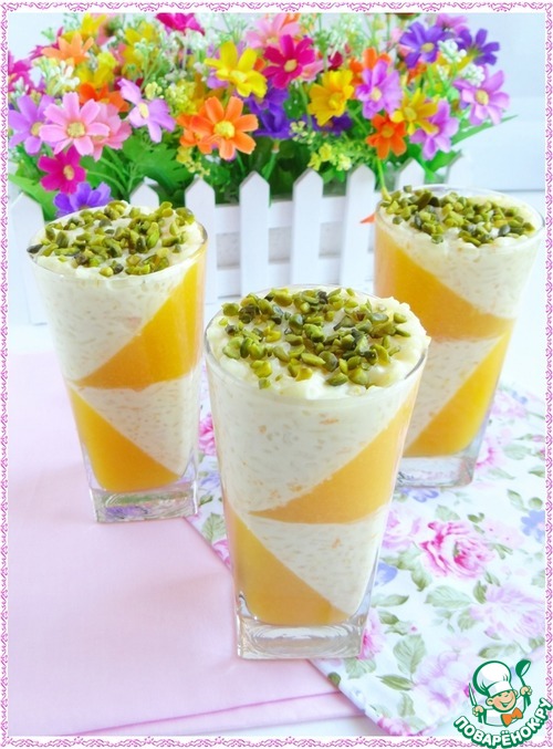 Когда верхнее желе застынет, снова заполняю стаканы сладким ризотто. Сверху ризотто посыпаю фисташками. Приятного Вам аппетита!