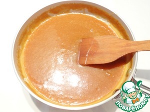 Затем добавляю абрикосовый джем (у меня он был с кусочками абрикосов, поэтому я измельчила его с помощью блендера), массу на плите хорошо перемешиваю, снимаю с плиты, охлаждаю.