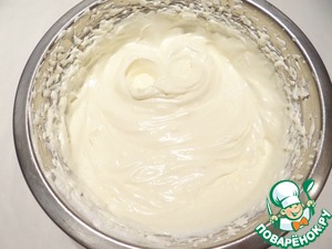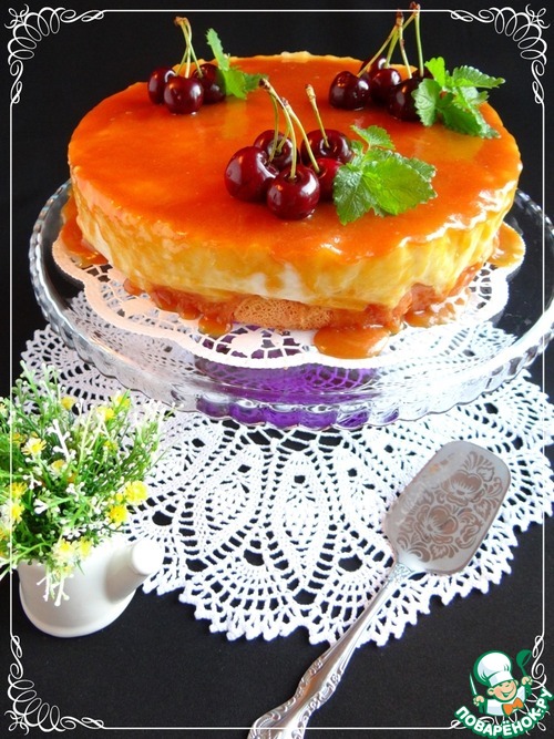 Выливаю абрикосово-сливочную массу на рисовый слой. Снова убираю торт в холодильник примерно на 2-3 часа.
