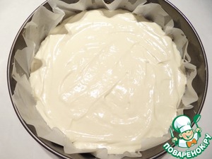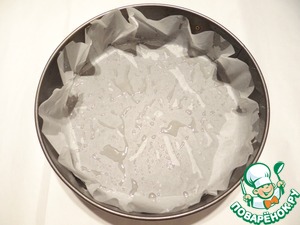 Круглую разъемную форму диаметром 24 см застилаю пергаментом, смазываю растительным маслом (если пергамент хорошего качества, то смазывать его не нужно, он хорошо снимается с готовой выпечки). -