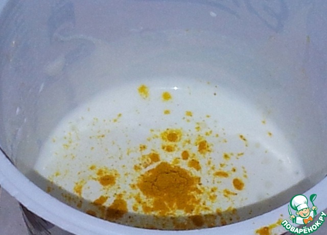 Взбила миксером. ( Куркуму я добавляю почти во всё, что готовлю ).