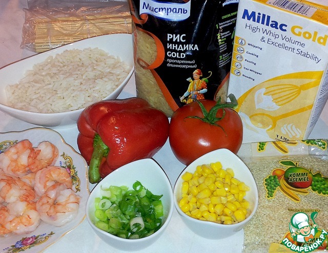 Ингредиенты для «Восточный рисовый салат с креветками»: