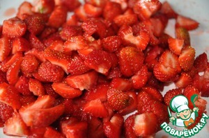 Клубнику моем, очищаем от плодоножек.