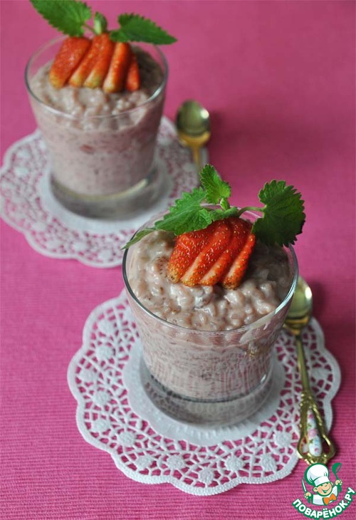 Даже если вы равнодушны к рису, то вам этот десерт всё равно понравится. Совсем нет вкуса рисовой каши. Очень нежно, клубнично...